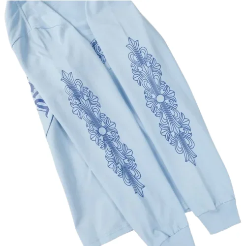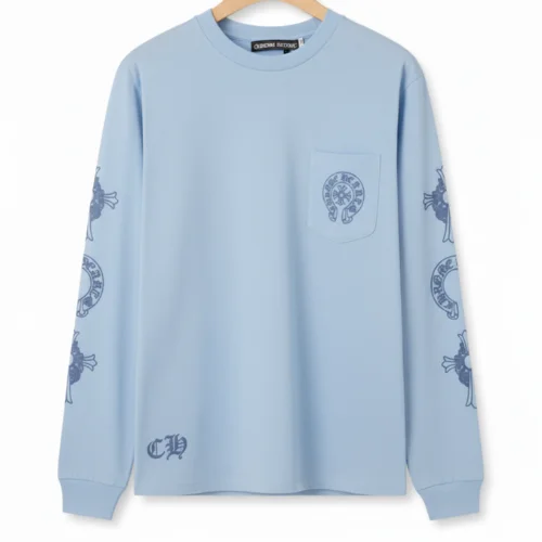 The Chrome Hearts Blue Sanskrit Long Sleeve T-Shirt stands as a masterpiece of design and meaning. Every aspect — from its hand-printed Sanskrit motifs to its handcrafted construction — tells a story of balance between culture and modernity. It’s a wearable work of art that reflects a sense of purpose, passion, and personality.