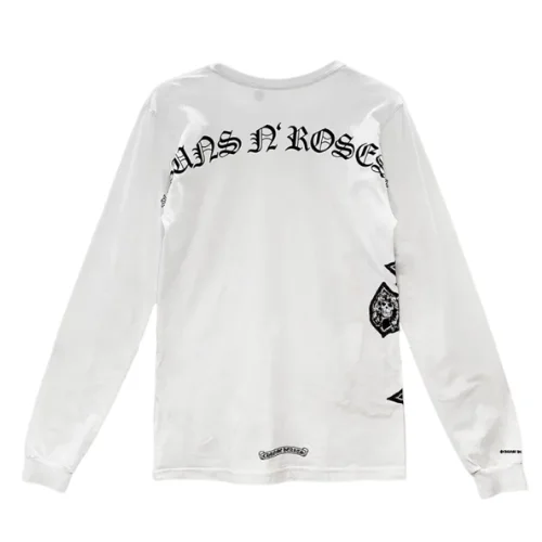 The Chrome Hearts Gun Roses Cross Embroidery White Long Sleeve Tee represents more than a fashion collaboration — it is a celebration of legacy. Both Chrome Hearts and Guns N’ Roses have carved their place in history by defying convention and staying true to their creative vision. This tee captures that shared legacy in tangible form.