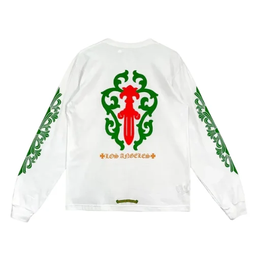 The Exclusive Dagger Chrome Hearts Los Angeles Long Sleeve Tee White captures the essence of Chrome Hearts’ legendary craftsmanship, rebellious artistry, and timeless style. Designed as a tribute to the brand’s home city of Los Angeles, this limited-edition piece embodies the dual spirit of sophistication and bold individuality that has defined Chrome Hearts since its inception.