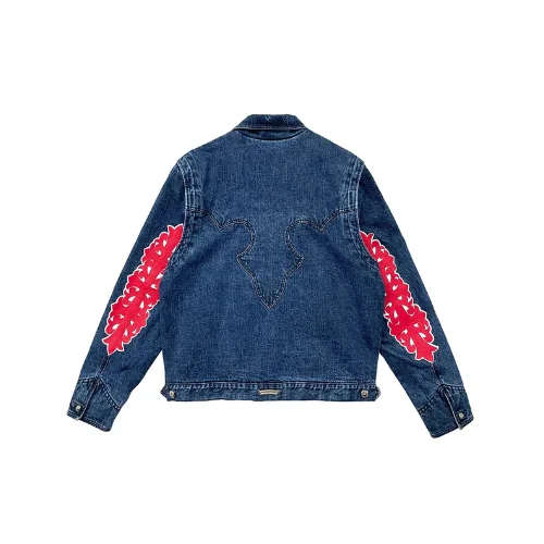 Red Floral Cross Chrome Hearts Leather Patches Denim Jacket Blue